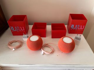 Se venden dos unidades de altavoces inteligentes Apple HomePod Mini en color naranja. Incluyen sus cajas originales, cables de carga y adaptadores de corriente. 75€ por unidad. Si qusiera las dos unidades enviar mensaje, de lo contrario se enviara solo una. - Dos unidades de HomePod Mini. - Color naranja vibrante. - Incluye cajas, cables y adaptadores.
