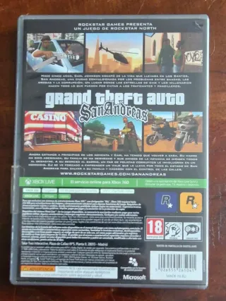 Videojuego Grand Theft Auto: San Andreas para Xbox 360. PAL España. Juego completo con su mapa y en excelente estado. - Edición Classics. - Clasificación PEGI 18. - Incluye carátula y caja. Envíos por wallapop.