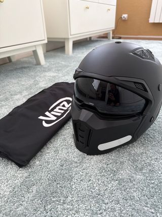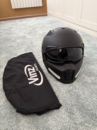 Casco de moto VNZ en color negro. Incluye funda. - Diseño moderno y aerodinámico. - Visera oscura integrada. - Acolchado interior para mayor comodidad. - Sistema de ventilación.