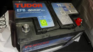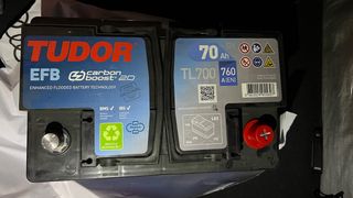 Batería Tudor EFB con tecnología Carbon Boost 2.0. - Tensión: 12V - Capacidad: 70 Ah. - Potencia de arranque en frío (EN): 760 A. - Tecnología: Enhanced Flooded Battery (EFB). - Fabricada en Europa por Exide Technologies. - Seminueva, montada hace un año.