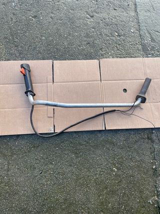 Manillar de repuesto para desbrozadora Husqvarna. Incluye puños y cableado, el cable del acelerador esta roto. Se vende tambien solo el puño del acelerador