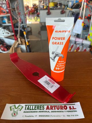 Se vende pack para desbroce compuesto de: 1 - disco maleza de la marca Oregon con fabricación Francesa, calidad profesional y preparado para trabajar en lugares donde la maleza necesita ser triturada. y 1- tubo de grasa, especial para desbrozadoras con boquilla de aplicación precisa y facil, 200gr disponible en nuestras instalaciones de Talleres Arturo o envios mediante wallapop