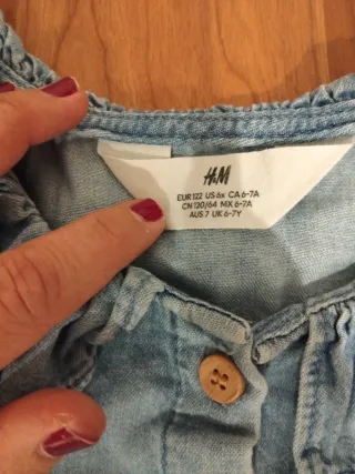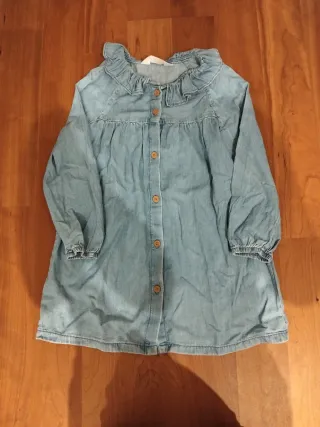 Vestido de estilo vaquero para niña, ideal para el día a día. - Cuello con volante. - Cierre de botones. - Mangas largas abullonadas con puño elástico. - Bajo con pespunte.