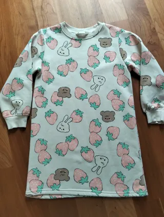 Vestido sudadera de HyM para niña con un divertido estampado. - Diseño con fresas y caritas de animales. - Manga larga. - Cuello redondo.