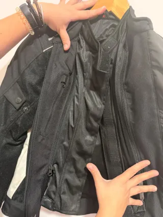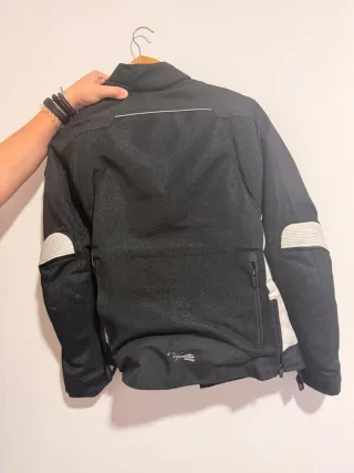 Chaqueta de moto diseñada para mujer, con un estilo moderno y funcional. - Paneles de malla para ventilación. - Detalles reflectantes para mayor visibilidad. - Cremalleras laterales para ajuste. - Forro interior extraible. - Mangas ajustables. - Protección en coderas y hombreras - Bolsillos exteriores e interiores. Talla M.