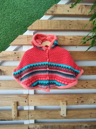 Poncho con capucha para bebé talla 6 meses 67 cm de la marca Orchestra. Divertido y colorido estampado Jacquard en colores coral, rojo, turquesa y gris en punto mezcla de algodón y acrílico. Con forro tipo manta coralina en color coral. Tiene capucha y cierre de botones. También tiene un botón a cada lado para poner bajo los brazos y que no se escape. Está en muy buen estado. 🕵️♀️ Encuentra más ropa para bebé en mi perfil y haz tu oferta por lotes 🛍️ 👶 #zdmropabebe Talla 6 meses 👉 #zdmropabebe6 C12