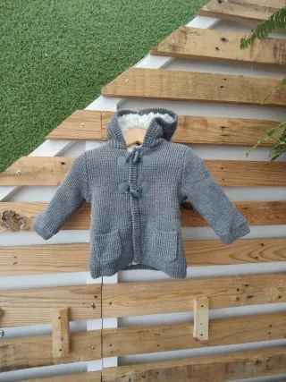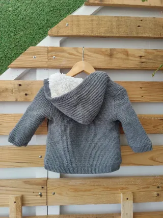 Abrigo bebé punto gris 3-6 meses y borreguillo