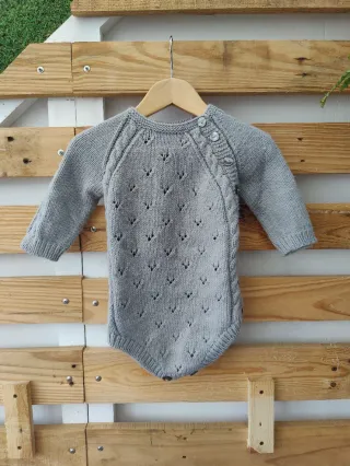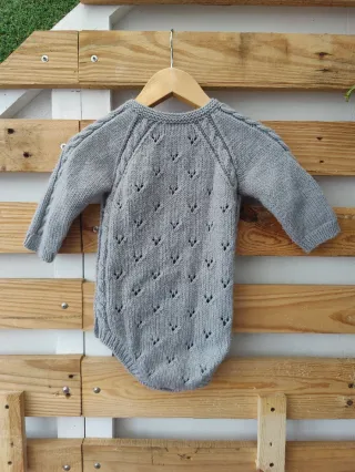 Pelele de manga larga para bebé, de punto, hecho a mano. Color gris con calados y ochos, material desconocido, esponjoso y calentito. Otoño Invierno, primavera. Talla 3-6 meses aproximada, están las medidas en las fotos. Está en buen estado pero tiene algunas bolitas en la espalda. Con cierre de botones en lateral y entrepierna. 🕵️♀️ Encuentra más ropa para bebé en mi perfil y haz tu oferta por lotes 🛍️ 👶 #zdmropabebe Talla 3 meses 👉 #zdmropabebe3 Talla 6 meses 👉 #zdmropabebe6 C12 #handmade #handmadewithlove #handknitted #handknit #faitmain