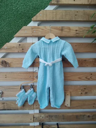 Pelele y patucos hechos a mano azul 3-6 m