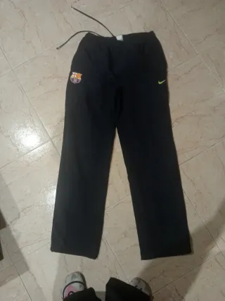 Pantalón deportivo del FC Barcelona. - Logo del equipo en la pierna izquierda. - Logo de Nike en la pierna derecha.. Malla transpirable en el interior Cremalleras auténticas del pantalon Totalmente original El bajo de los pantalones en la parte de atrás están desgastados de rozar con el suelo(véase fotos)por lo demás impecable