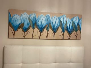 Cuadro Pintura óleo flores azules y beige