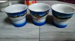 Conjunto de tres vasitos de cerámica con un detalle sorpresa en el interior. - Diseño único. - Acabado liso y brillante. Cuando se vierte el licor se puede ver en el fondo la imagen de una mujer desnuda
