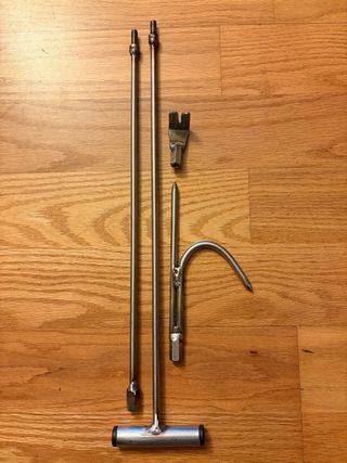 Set de herramientas para pesca submarina. Acero inox de 8mm unos 96cm de largo en total. - Saca varillas. - Saca meros. - Mango en T.