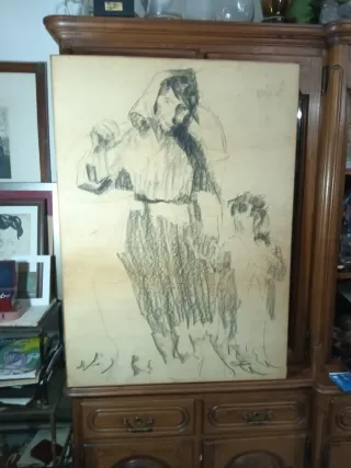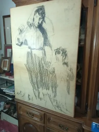 Dibujo a carboncillo del artista Casimiro Martínez Tarrasso. - Representación de figuras humanas. - Técnica mixta sobre papel.