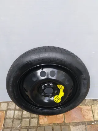 Rueda de repuesto tipo galleta de 16 pulgadas. - Medida: R16 - Anclaje: 5x112 - centro buje 57.1 - t125/70r16 - Compatible con marcas como Volkswagen, Seat, Audi (A3) y Skoda.