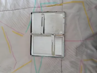 Elegante pitillera metálica con un llamativo diseño de calavera adornado con pedrería. - Diseño de calavera con pedrería. - Acabado metálico plateado.