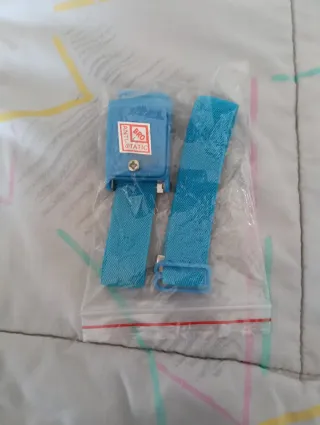 Pulsera antiestática de color azul, ideal para evitar la acumulación de electricidad estática. - Fabricada en material textil. - Incluye pinza metálica.