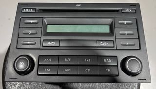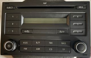 Radio para grupo Volkswagen con funcionalidad MP3. - Botón EJECT - Botón MIX - Teclas de 1 a 6 - Botones de navegación - Botones AS/i, B/F, TRE, BAS, FM, AM, CD, TP - Mando giratorio con función de encendido/apagado y volumen