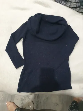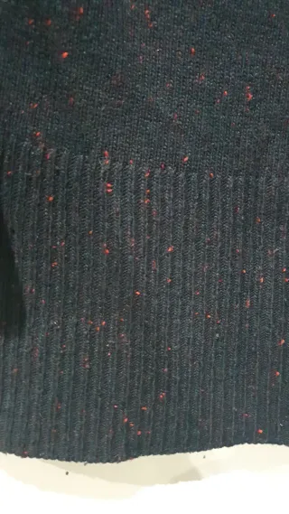 Jersey de lana color azul marino con hilo rojo. Con un cuello amplio muy bonito. Muy calentito. Material: 35% Lana Diseño jaspeado con toques de color rojo