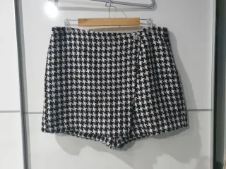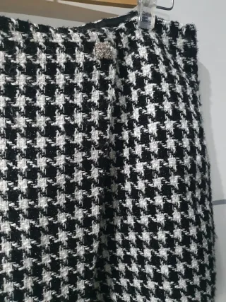 Falda pantalon de invierno, muy elegante con un detalle del botón joya. Estampado pata de gallo.