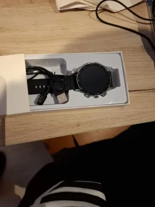 Caja para smart watch de color blanco. - Diseño minimalista. - Texto SMART WATCH impreso en la tapa. - Reloj inteligente, sin uso . -app movil, alarma , llamada, mensageria, etc ... muy completo. algo negociable.