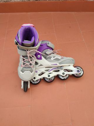 Marca Oxelo Ajustables entre las tallas 35 y 38. Muy buen estado. Tan solo algunas marcas de uso que se ven en las fotos. Incluye bolsa de transporte.