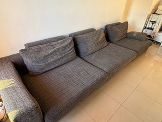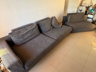 Sofá modular de tela en color gris. Sus cojines son amplios y cómodos. - Diseño moderno y versátil. - Tapicería de tela. - Múltiples secciones para configurar. + mueble de televisor +comedor aparador Solo recogida