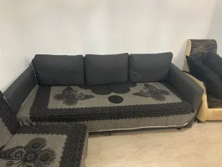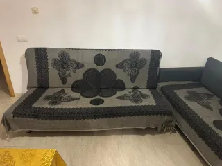 Este sofá cama ofrece un diseño moderno y funcional para tu hogar. Su tapicería en tela le da un toque acogedor. - Tres cojines grandes en el respaldo. - Funda con estampado de mariposas y encaje. - Estructura de sofá cama.