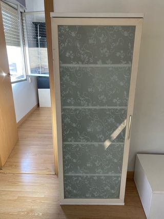 Elegante vitrina con un diseño floral. - Puerta de cristal con estampado. - Marco de madera.