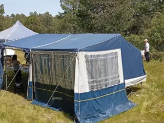 Remolque tienda Comanche Kenya en perfecto estado. Impermeabilizado en Abril de 2025. Ruedas y lanza con un año. Cremalleras y cortinas en perfecto estado. Sin humedades. Muy manejable para guardarlo en cualquier garaje y fácil de conducir con cualquier vehículo. 2 habitaciones de 1,90x1,25. - Incluye cofre de almacenamiento y avancé también en perfecto estado.