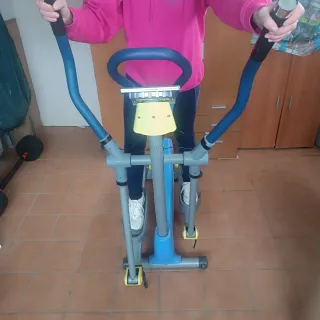 Elíptica de color gris, azul y amarillo, ideal para mantenerte activo en casa. - Diseño ergonómico. - Pedales antideslizantes. - Manillar con agarre cómodo.