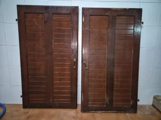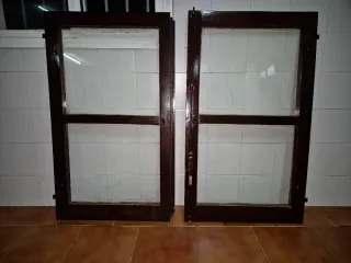 Conjunto de ventana de madera completa con sus contraventanas. - Marco de madera. - Contraventanas de madera. - Paneles de vidrio. - Premarco de madera. Medidas de hueco: 140x120 cm