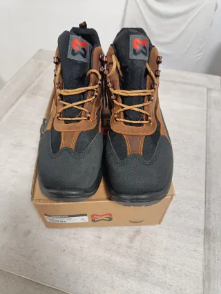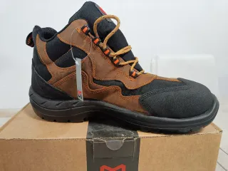 Botas de seguridad con un diseño robusto y moderno. - Combinación de materiales en marrón y negro. - Cierre con cordones. - Caña alta para mayor protección.