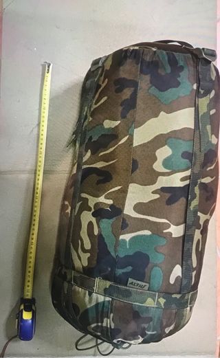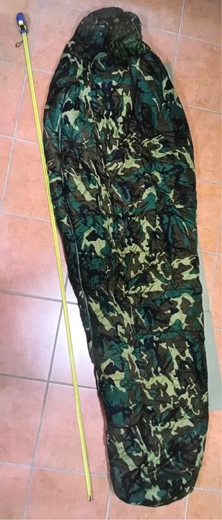 Saco de dormir con diseño de camuflaje militar de la marca Altus. - Diseño de camuflaje. - Cintas de sujeción. Saco altus 4 estaciones, modelo camuflaje milotar. 2m largo 2.5kg Funda de compresion Nuevo sin usar
