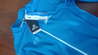 Maillot de ciclismo de manga larga en color azul. Presenta un diseño moderno y funciona Nuevo a estrenar l. - Cremallera frontal completa. - Tejido técnico transpirable. - Logos de la marca Spink. - Bolsillos traseros. PvP en tienda 79,99