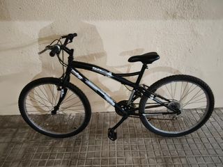 Bicicleta de montaña en color negro. Esta en perfecto estado ya que apenas se ha utilizado. Hay partes oxidadas del no usarla y de estar en la intelperie - Cuadro de bicicleta. - Ruedas de bicicleta. - Sillín de bicicleta. - Manillar de bicicleta.