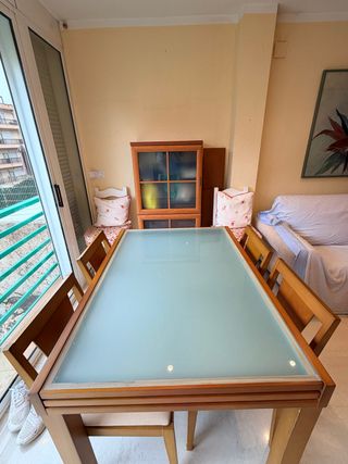 Mesa comedor cristal y madera + 4 sillas