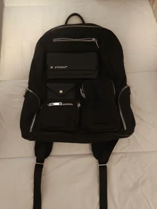 PRECIO NO NEGOCIABLE Mochila negra grande con múltiples bolsillos exteriores, cierre de cremallera con compartimento para el ordenador y bolsillo interior. Asas regulables y reforzadas Color: Negra Medidas aprox.: 33x15×38,5 cm Se vende por falta de uso No me interesa intercambios PRECIO NO NEGOCIABLE