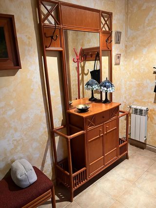 Mueble recibidor de madera y ratán