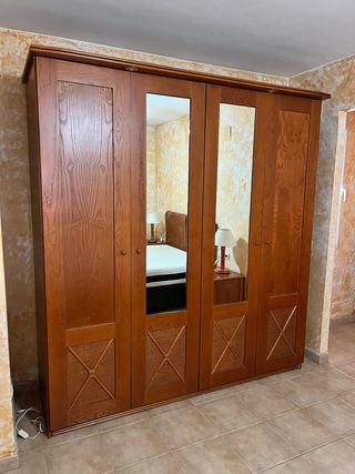 Armario de madera con mimbre