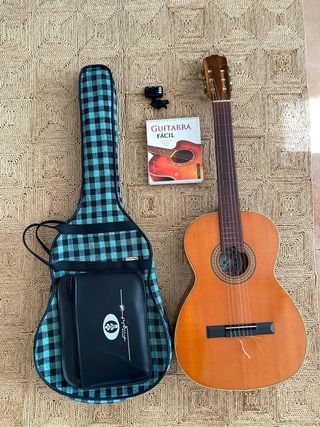 Guitarra española de la marca Vicente Tatay Tomás, de muy buena calidad y sonoridad. Incluye funda y accesorios. - Funda de guitarra con diseño a cuadros. - Afinador electrónico. - Libro de Guitarra Fácil. -Se vende por cambio de instrumento.