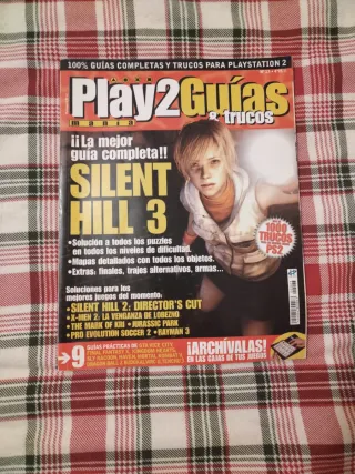 Revista Play2Guías con la guía completa del videojuego Silent Hill 3. - Solución a todos los puzzles. - Mapas detallados con objetos. - Incluye extras: finales, trajes y armas. - También incluye guías de otros juegos como Silent Hill 2, X-Men 2, Jurassic Park, Pro Evolution Soccer 2 y Rayman 3.