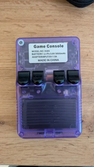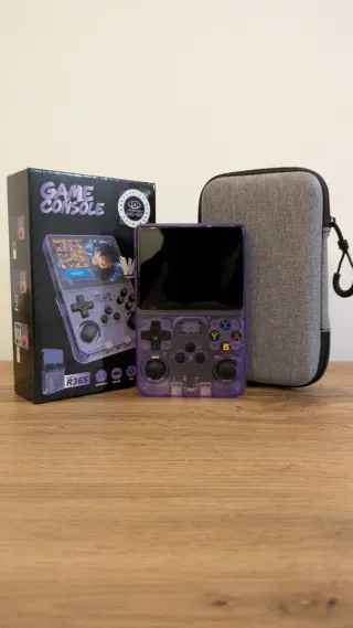 Consola emuladora portátil R36S en color morado transparente. Sin marcas de uso. Incluye su funda protectora. - Diseño compacto y ergonómico. 🎮 - Pantalla nítida para una experiencia de juego inmersiva. 📺 - Botones y joysticks de alta precisión. 🕹️ - Funda de transporte gris incluida.📦 La consola está perfecta, sin ningún rasguño. Incluye protector de pantalla