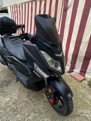 Moto Wottan de color negro, con un diseño moderno y deportivo. - Parabrisas oscuro. - Espejos retrovisores negros. - Baúl trasero negro. tiene garantira con motor nuevo 12.000km esta impecable la moto ninguna caida bateria nueva ruedas nuevas tiene alarma se arranca sin llave esta nueva la moto es del 2019