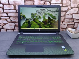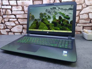 Portátil HP con un diseño moderno y llamativo en negro y verde. Ideal para gaming y tareas exigentes. * 15,6 pulgadas * Windows 11 * 500 gigas SSD * 16 gigas de RAM * Intel core i7-6700HQ * 2 gráficas: Nvidia GeForce GTX 950 M / HD GRAPHICS 530 * Bluetooth, CDs, USB 3.0, HDMI, wifi... * Batería con duración de 1 hora * OFFICE INSTALADO PERMANENTE