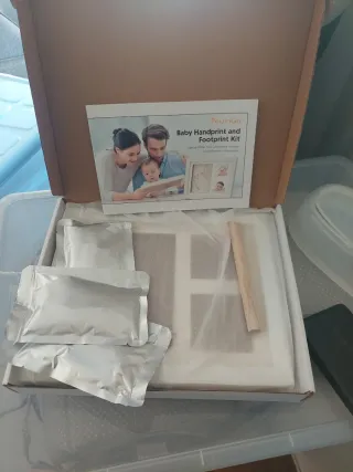 Kit para crear huellas de manos y pies de bebé de la marca PewinGo. Ideal para guardar un recuerdo especial. - Incluye materiales para crear la huella. - Marco para fotos.