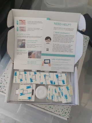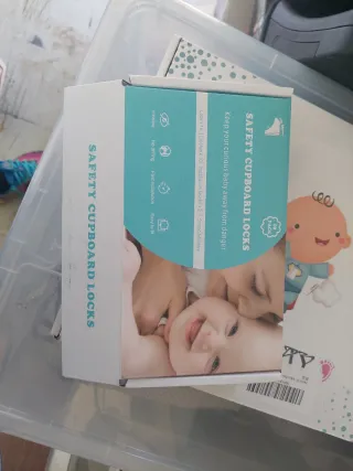 Pack de cierres de seguridad para evitar que los niños abran cajones o armarios. Son de color blanco y vienen con adhesivo 3M. - Cierres de seguridad infantil. - Adhesivo 3M incluido. - Color blanco. Protector de esquinas gratis