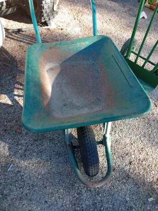 Lote de 2 carretilla de jardín con cubeta de color verde. - Estructura metálica. - Rueda neumática.