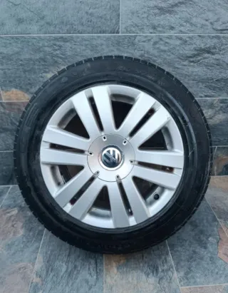 Llanta de aleación Volkswagen con neumático. - Medida del neumático: 215/55 R16. - Diseño de 10 radios.