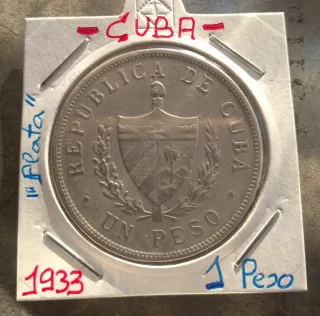 Moneda de 1 Peso Cubano de plata, acuñada en el año 1933. - Diseño de la República de Cuba. - Plata 900. - Precio plata Spot: 63 euros. #Chollazo